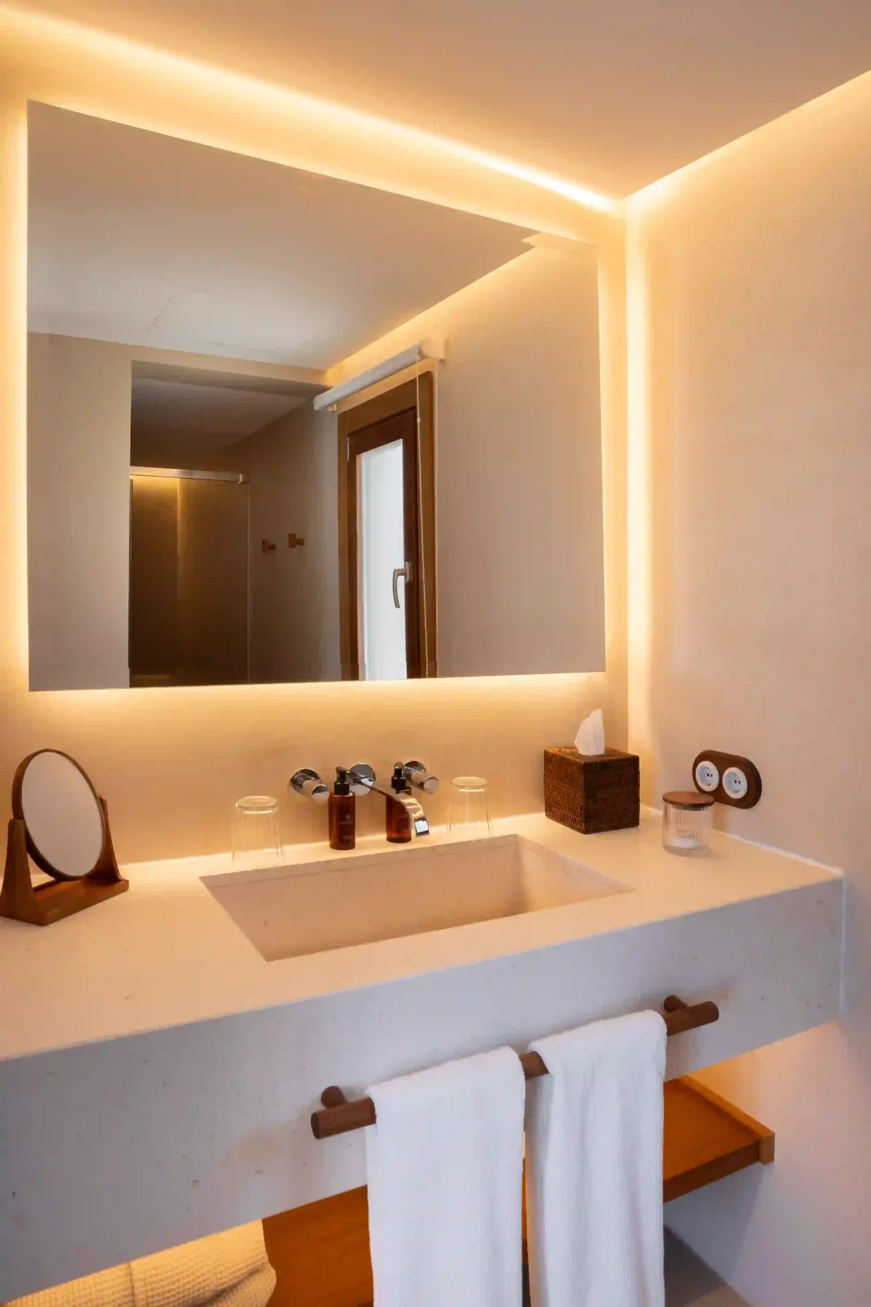 De 34 a 44 m², esta estancia combina un elegante dormitorio, una luminosa sala de estar y una amplia terraza con vistas panorámicas al Mediterráneo. Los tonos neutros, las texturas naturales y la serenidad de su diseño invitan a desconectar, a respirar el silencio y a dejarse envolver por la luz cambiante del mar.