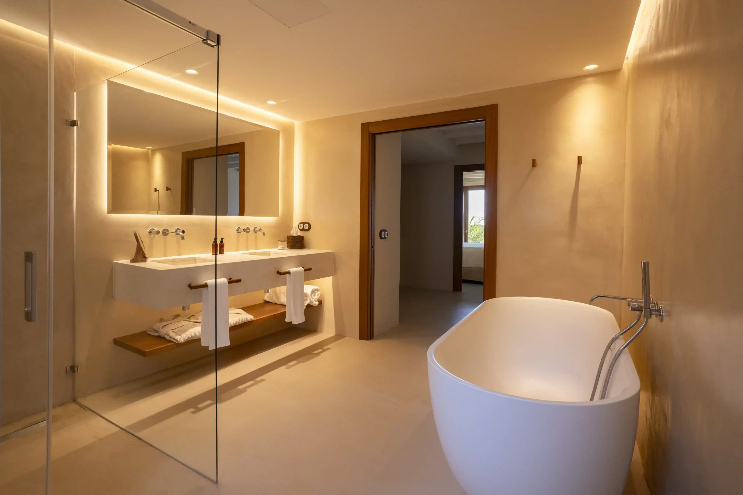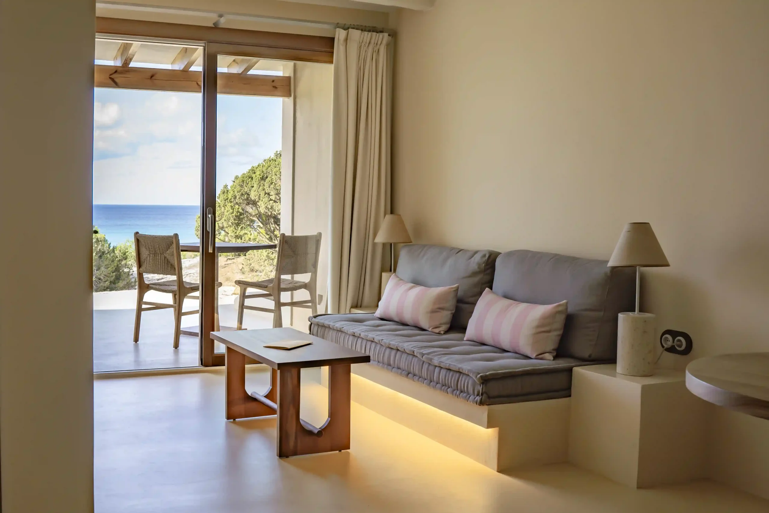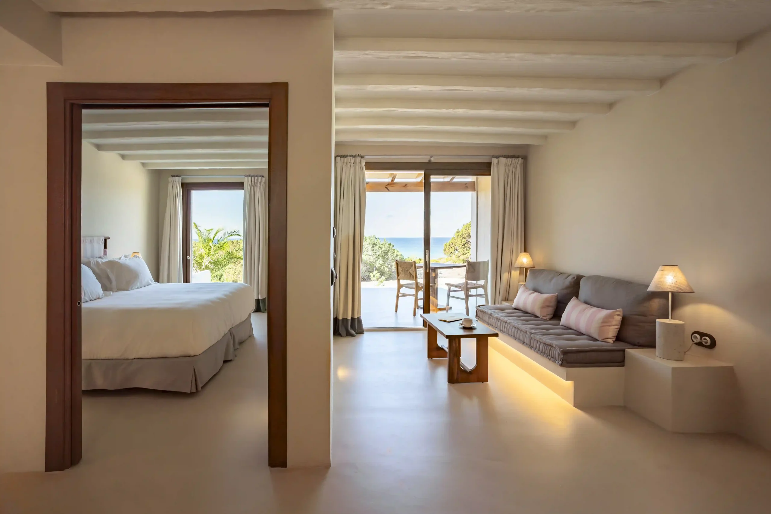 With 50 – 60 m², they feature a bright bedroom, a separate living room and a private terrace with an outdoor bed and sea views. A space where indoors and outdoors flow naturally into one another, inviting contemplation and calm.
